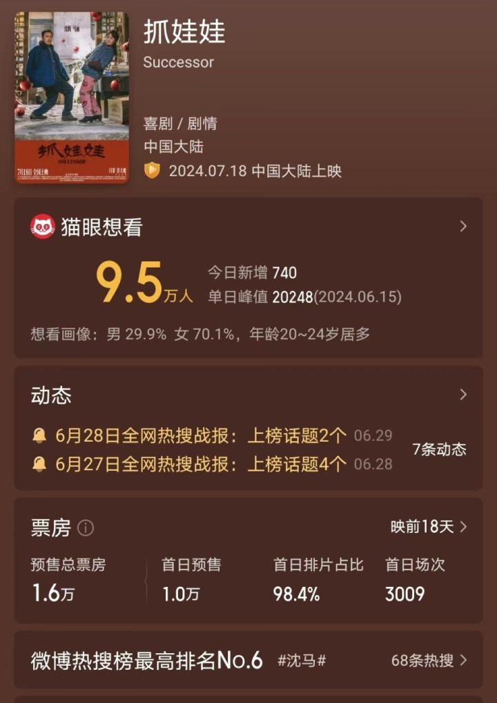 沈腾和马丽主演的《抓娃娃》则被看好成为今年暑期档的票房冠军。作为《西虹市首富》系列的续集,电影的喜剧效果一直备受认可,而闫非和彭大魔的联合执导更是增加了人们对该片的期待。尽管面临着压力,但《抓娃娃》具有良好的口碑基础,相信在上映后能够获得观众们的热情追捧。