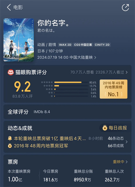 8年后再度上映,票房突破亿!《你的名字》为何再次大卖?