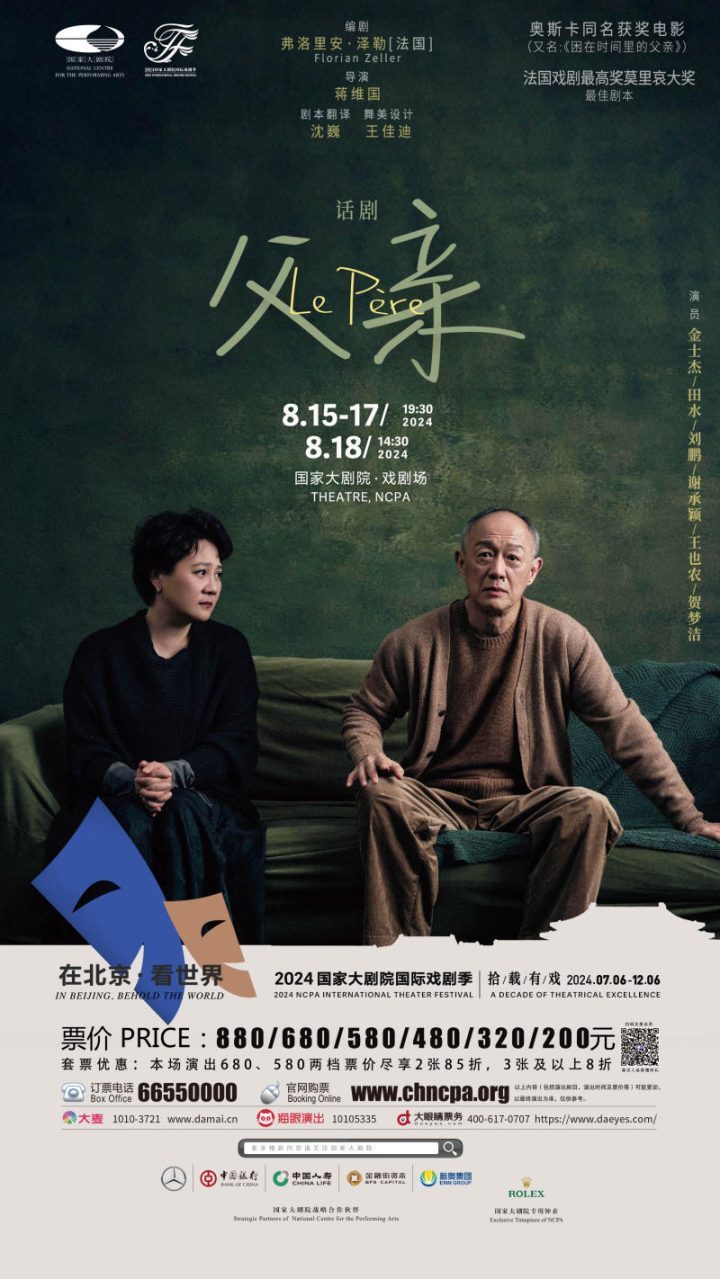 新京报讯(记者刘臻)最近,由上海话剧艺术中心制作出品的话剧《父亲》在上海话剧艺术中心·环球舞台演出季首演。这部话剧是由法国剧作家弗洛里安·泽勒编剧,著名表演艺术家金士杰和国家一级演员、上海话剧艺术中心演员田水主演的。据悉,演出将持续到8月11日,随后将于8月15日至18日在国家大剧院上演。